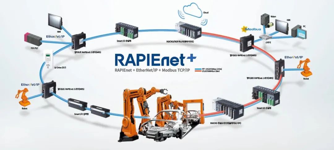 RAPIEnet+将LS电气专有的RAPIEnet通信协议与通用Modbus/TCP、EtherNet/IP协议结合,打破通信“壁垒”,并追加开发了核心诊断功能,目前正应用于现代汽车及现代mobis相应解决方案中。