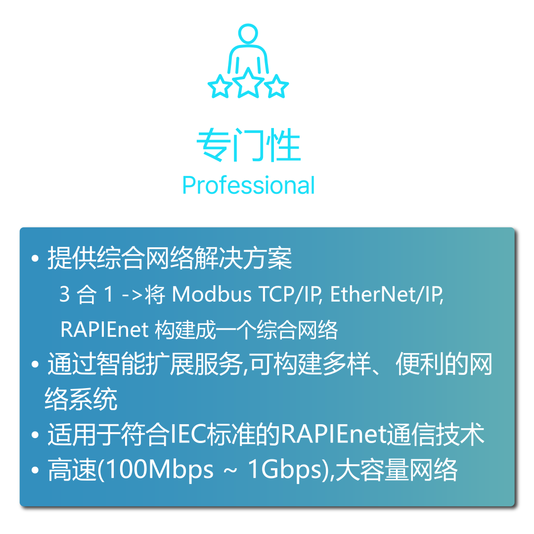 RAPIEnet (Real-time Automation Protocols for Industrial Ethernet)是韩国唯一的实时通信IEC国际标准协议,RAPIEnet+更进一步符合OPC UA国际标准,代表LS电气向工业“万物互联”迈出坚实的一步。